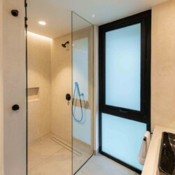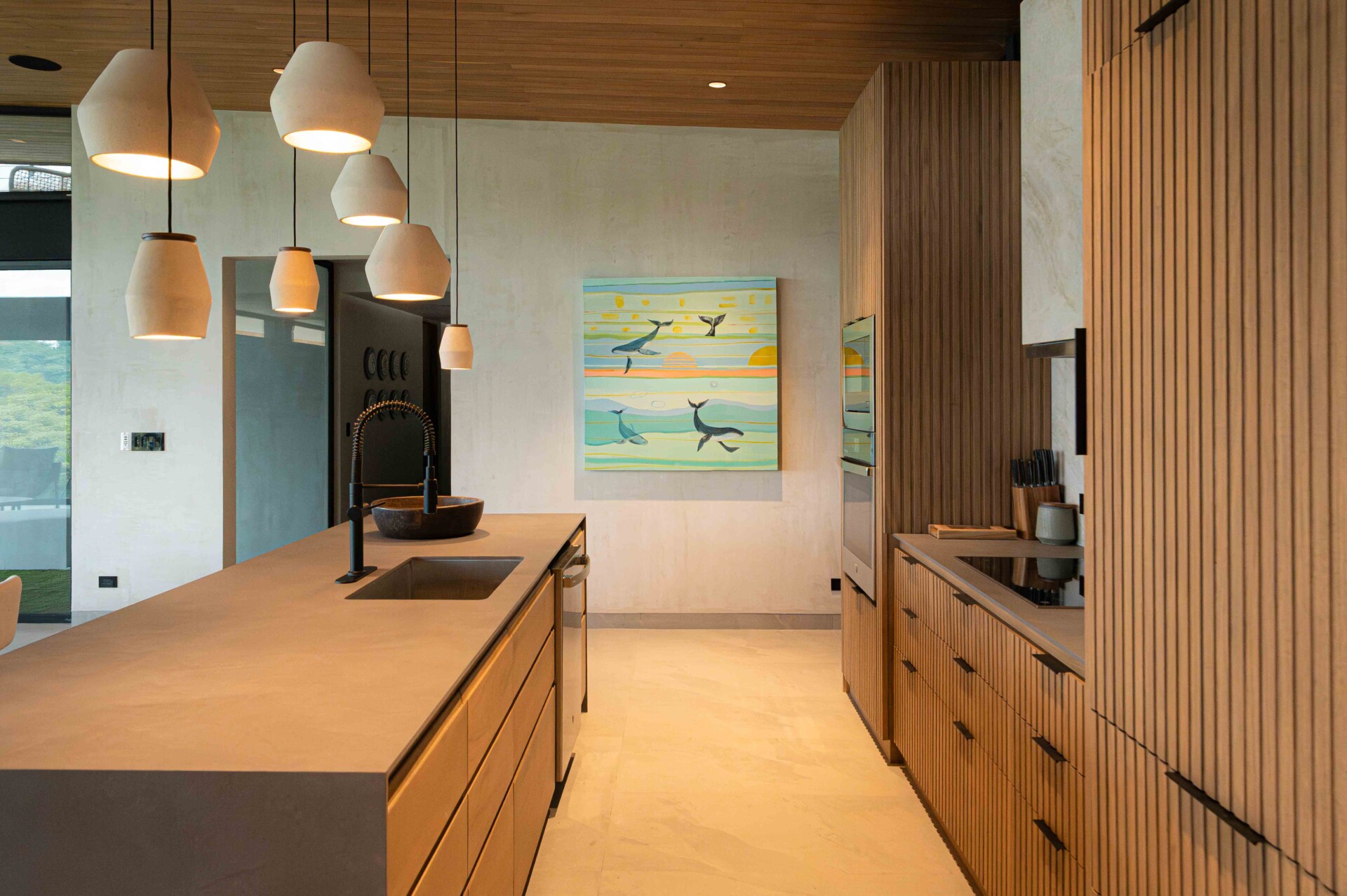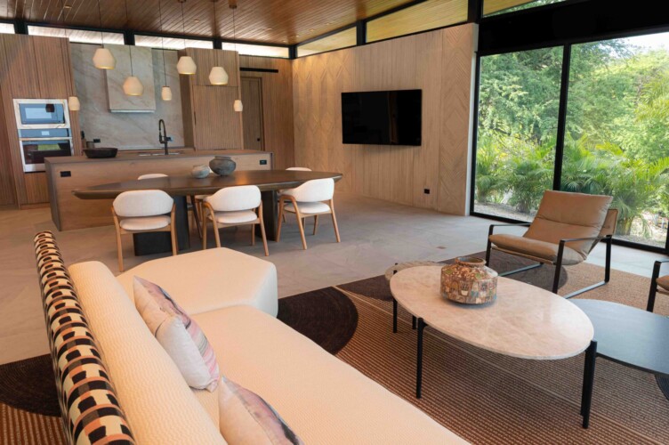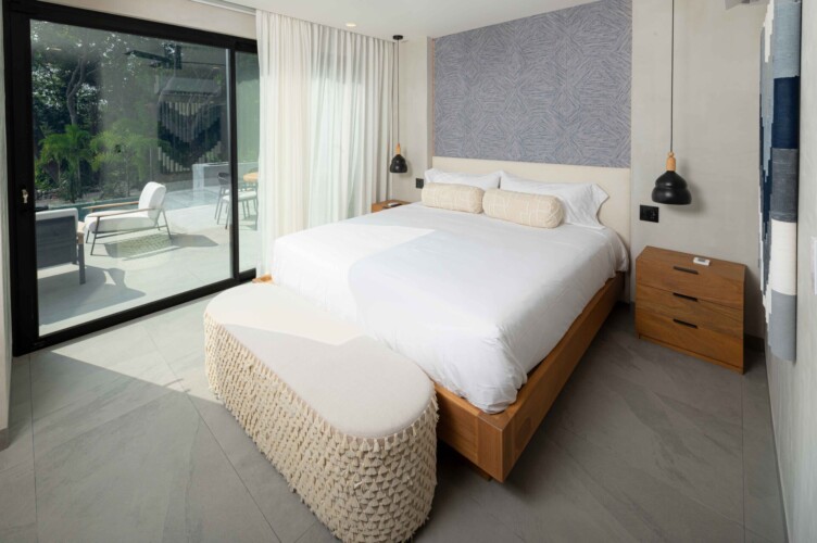 Every detail of Casa Armonía’s interior has been carefully chosen to create a sense of modern luxury. High-end furnishings, custom accents, and curated décor make each space feel refined yet welcoming. The villa’s sophisticated lighting features highlight architectural details by day and set the perfect mood by night—whether it’s the warm ambient glow in the bedrooms, statement fixtures in the living room, or soft accents throughout the open-plan spaces.