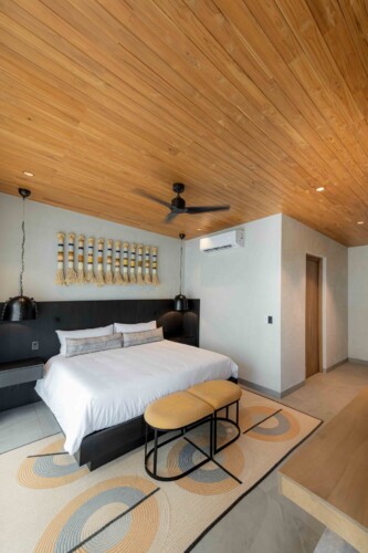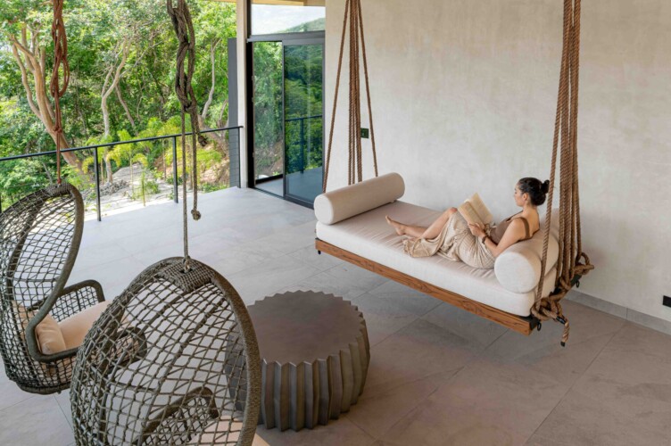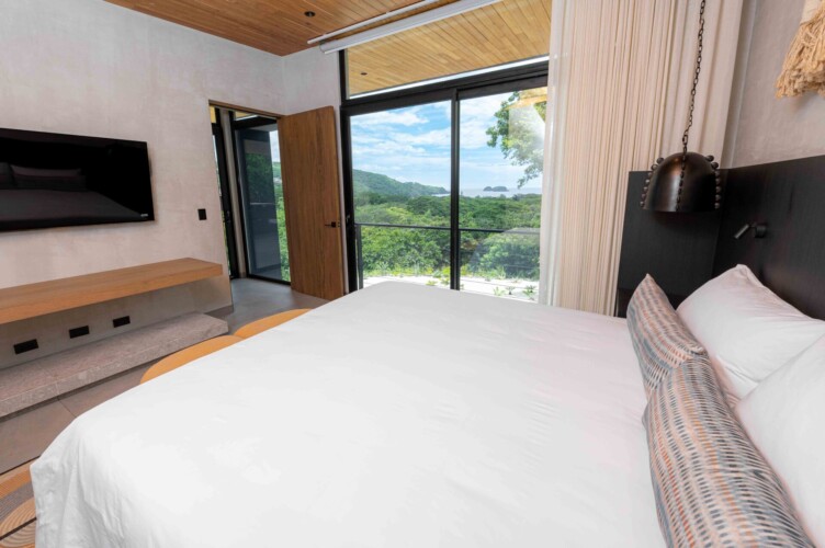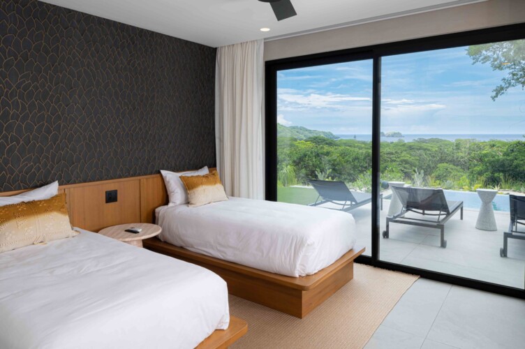 Casa Armonía offers three bedrooms: one with a queen bed, one with two twin beds, and the master suite with a king bed. The villa also features an upstairs terrace with hammocks and a comfortable seating area—an ideal space to enjoy breathtaking sunsets, relax with the ocean breeze, or practice yoga and exercise in a shaded, well-ventilated setting. Each bedroom offers panoramic ocean views, and the gourmet kitchen is equipped with top-of-the-line appliances, designed so even everyday moments—morning coffee or evening wine—are accompanied by ocean vistas.